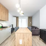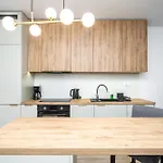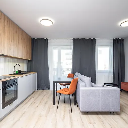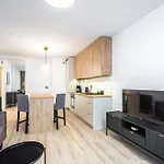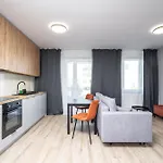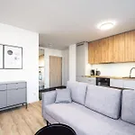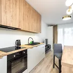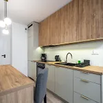 Een kitchenette met koffie- en theevoorzieningen, een koelkast, een oven is beschikbaar als onderdeel van de zelfvoorzienende voorzieningen van het appartement. Het is gesitueerd op 550 meter afstand Katowice Meteorologow bushalte.